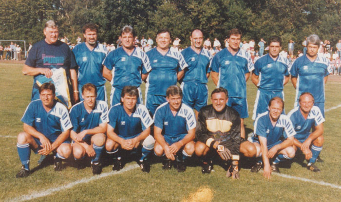hintere Reihe von links: Klaus Decker, Manfred Zapf, Maik Zentrich, Wolfgang Seguin, Joachim Streich, Dirk Stahmann,